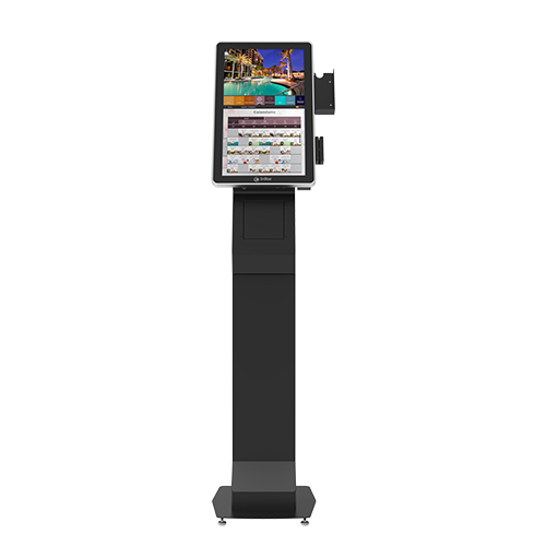 Su diseño elegante y resistente, junto con opciones de soporte de piso y accesorios adicionales, lo convierten en una solución adaptable para múltiples escenarios de autoservicio.
