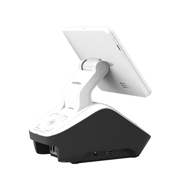 El equipo integra una impresora térmica de 3 pulgadas con cerradura, eliminando la necesidad de dispositivos externos y optimizando el espacio disponible. Además, ofrece compatibilidad con múltiples métodos de pago mediante opciones de MSR, lector EMV y lector NFC, permitiendo pagos con tarjeta, pagos móviles y pagos sin contacto. También puede combinarse con terminales de pago independientes de marcas líderes.