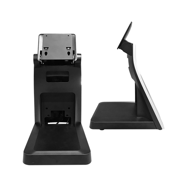 Este soporte ha sido desarrollado para alojar terminales POS de 14 a 21.5 pulgadas, incluyendo modelos populares como Audrey A5 II, Gracia y Ethany, ofreciendo la posibilidad de instalación tanto en modo vertical como horizontal, así como la integración de una segunda pantalla. La pantalla puede inclinarse hasta 30 grados, garantizando un ángulo de visión cómodo para operadores y clientes.