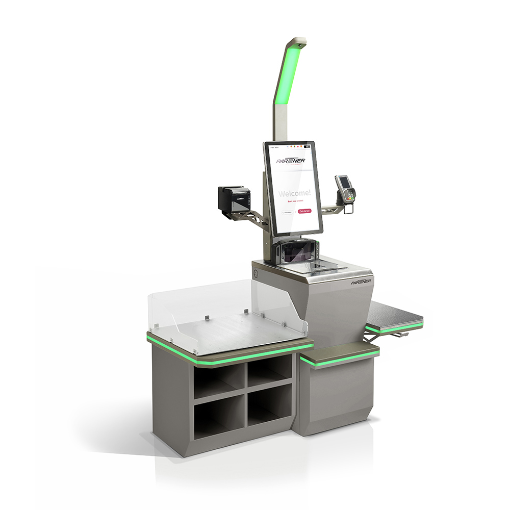 El sistema incorpora software SCO modular impulsado por IA, con flujos de pago guiados, interfaz personalizable y control total de los periféricos, como escáneres biópticos, impresoras térmicas, básculas, cámaras y señalización LED. Este software es independiente del sistema POS y puede integrarse fácilmente con plataformas existentes mediante APIs, así como con sistemas de fidelización y soluciones ISV.